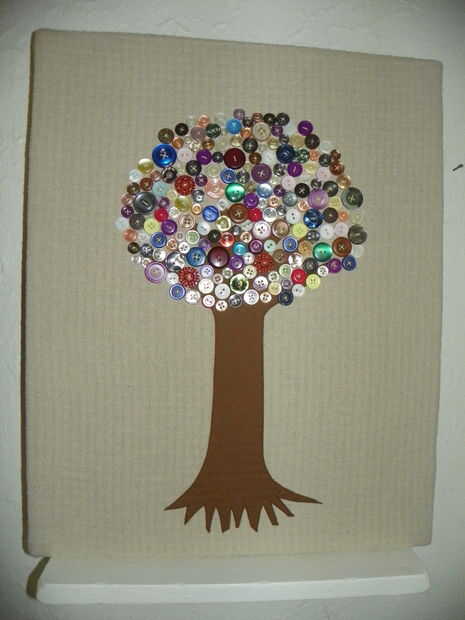 salir de su tarro de botón! Aquí es un interesante proyecto de decoración que vi en Pinterest. También se vería gran utilizando diferentes tonos de verde botones de solo. Me han estado poniendo mi botones de repuesto en un tarro durante varios años y tenía toda una colección! Toma un tiempo para coser todos los botones, pero lo hice mientras estaba viendo la televisión, por lo que pasó bastante rápido.