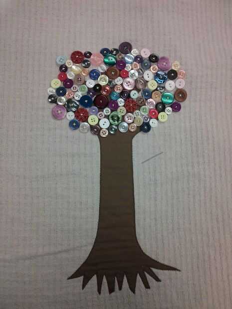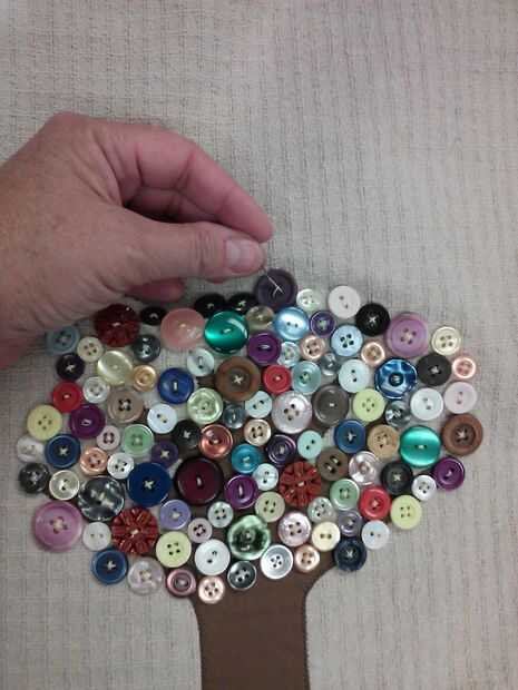 a partir del centro de las ramas, comenzar a coser botones al árbol, uno a la vez. Trate de asegurarse de que no tienes dos botones del mismo color al lado del otro y tratar de distribuir los botones de tamaño grandes. Continuar coser botones en el árbol hasta que obtengas el tamaño que desee.