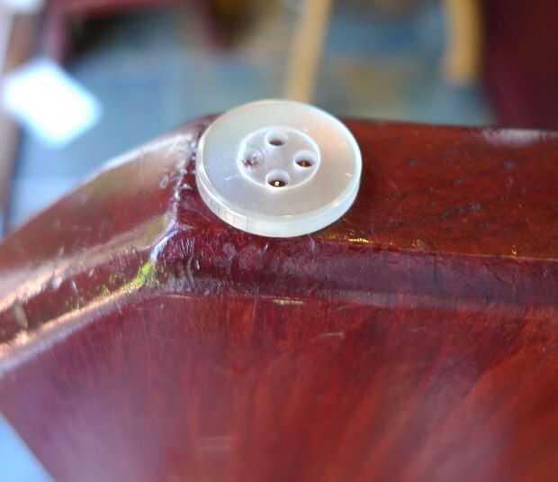 Lugar 5 o 6 botones antes de empezar a pegar, yo alternaba entre poner un poco de pegamento en la silla del sí mismo y poner un toque en el botón. Ambos métodos funcionan bien, pero cuando usted está llenando en una situación difícil con un pequeño botón es más fácil de dab la silla para no tener pegamento en los dedos.