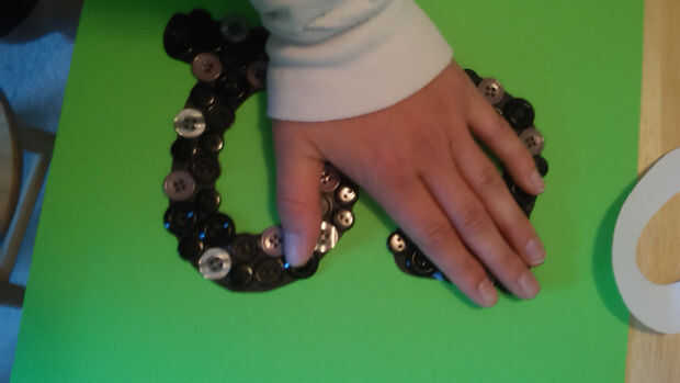 Cuando estás contento con cómo se colocan los botones y ha pegado abajo, es hora de pegar la carta en su apoyo.