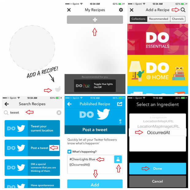 Después de que haya iniciado sesión en con IFTTT, configuramos el uso de la bobina sobre collages como una guía de configuración, a partir de la imagen superior izquierda y va a través a la derecha. Usé un iPhone para esta configuración.