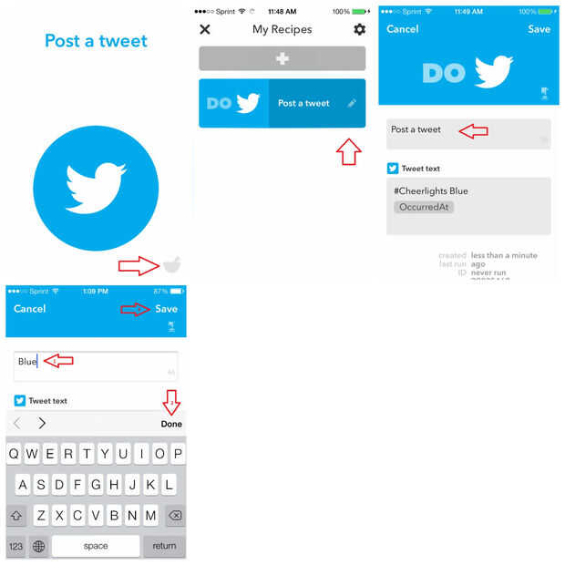 La receta que hemos creado tiene un nombre por defecto de "Post un Tweet" que nosotros estamos denominando como "Azul".