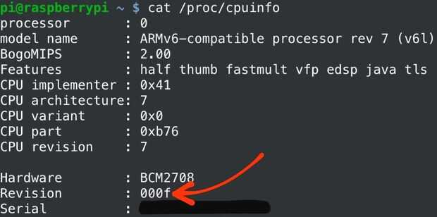 Cerca de la parte inferior donde dice "Revision", revise el wiki eLinux y comparar su número con los de esa página. Una vez que sabes el modelo y la revisión de PCB, puede seleccionar que pines GPIO que desea utilizar desde la página web hobbytronics . Teniendo en cuenta que el interruptor está activado cuando el GPIO pin esté conectada a tierra que aconseja el que uso de un pin GPIO que está cerca lo suficiente para un conector de tierra para hacer una conexión.