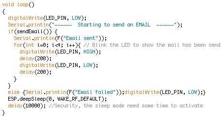 La única diferencia entre el código del dispositivo y la placa del programador es en el segundo, enviar un correo electrónico sólo cuando usted presiona el botón.