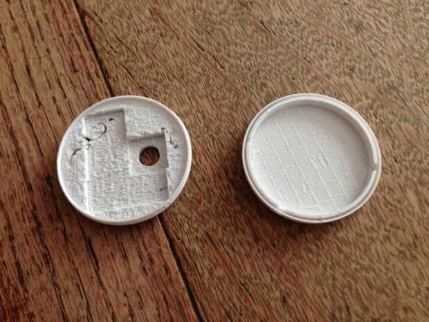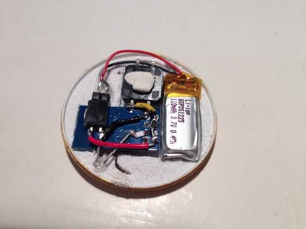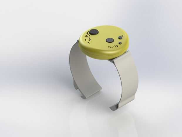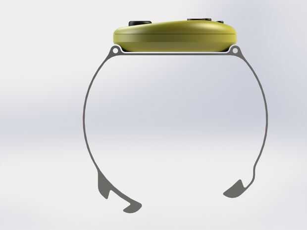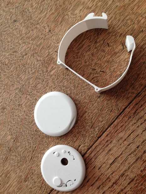 Un amigo me ayudó a encontrar un CAO de una banda y para la parte superior e inferior con SolidWorks. El dispositivo integra perfectamente en esta cubierta de plástico "en forma de reloj" con la batería de la 110mA. Como ha sido grabado en el lado, la banda es realmente fuerte y flexible.