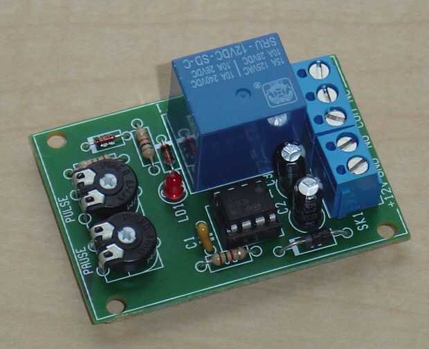 Este kit tiene un temporizador 555 ajustable que puede hacer clic en 2 cables juntos dondequiera a partir 2 a 60 segundos. Es alimentado por 12v dc. Viene desmontado, y tendrás que soldar tú mismo. Tomé un adaptador de alimentación de 12v dc de un antiguo conjunto de altavoces de HP para alimentar el dispositivo.