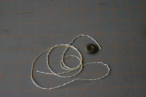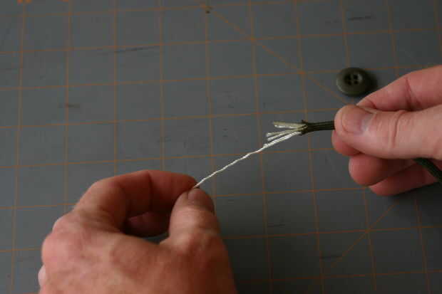 La cadena debe ser fuerte y lo suficientemente flexible para girar sobre sí mismo. Usé uno de los hilos internos de cuerda de paracaídas 550, a cerca de 30 pulgadas en longitud.