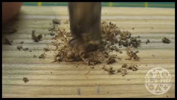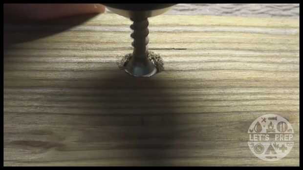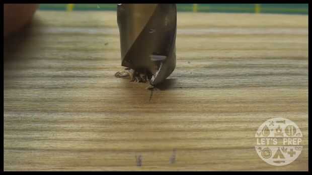 Con un taladro de 8mm preparé un orificio piloto de poca profundidad que era extendida en la parte inferior con una "medida de broca". Usé un tornillo del mismo tipo que se utilizarían para fijar a la pared y cortar dos muescas en su cabeza con mi dremel/corte-fuera de la rueda. A continuación usé este bit en mi taladro para ampliar el diámetro del orificio, pero sólo en la parte inferior. De esta manera el tornillo puede deslizar en la ranura pequeña y permanecerá en ese lugar.