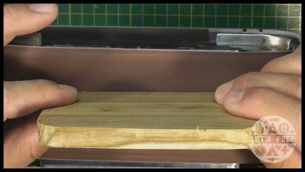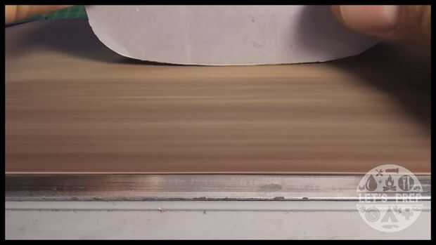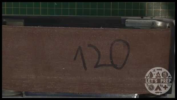 Una lijadora de banda con un grano 120 fue utilizado de forma más o menos el botón de reproducción. Esto fue principalmente la forma exterior para eliminar las marcas de sierra y darle la forma general.