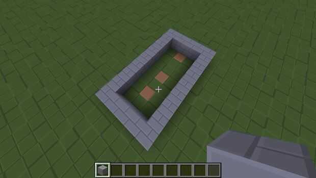 Pulsa el botón y el carro de mina comienza! Ideal para uso en estaciones de tren.Paso 1:Colocar 3 cuadras en este patrón (no importa qué tipo de bloque que utilizas). Esto es donde comienza la pista.Paso 2:Dejar un espacio de 1 cuadra, luego agregar