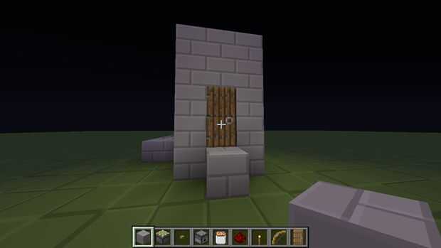 Luego puede agregar detalles como yo lo hice con ampliar el frente de la sala y agregar una puerta y una antorcha dentro encima del dispensador