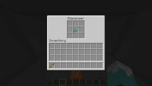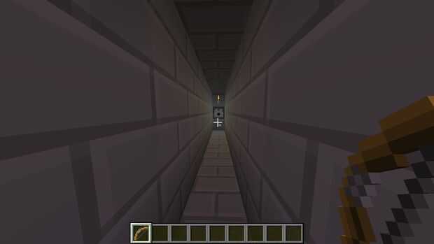 Probar el artilugio tirando el botón con un arco y flecha, si tiene éxito, los pistones se empuja los bloques y hacer un piso para que los jugadores alcanzar el artículo dispensado.