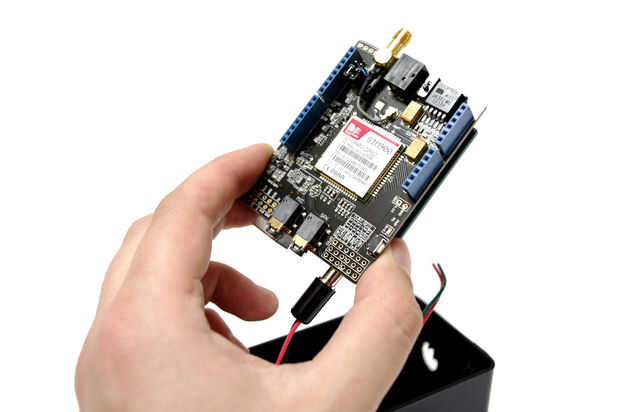 Conecte el cable rojo al pin 2En el escudo GPRS.