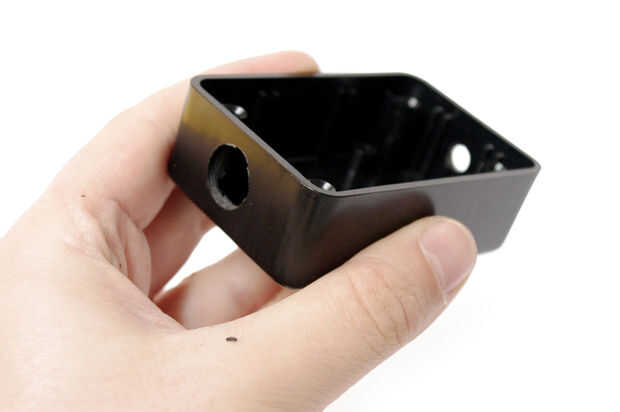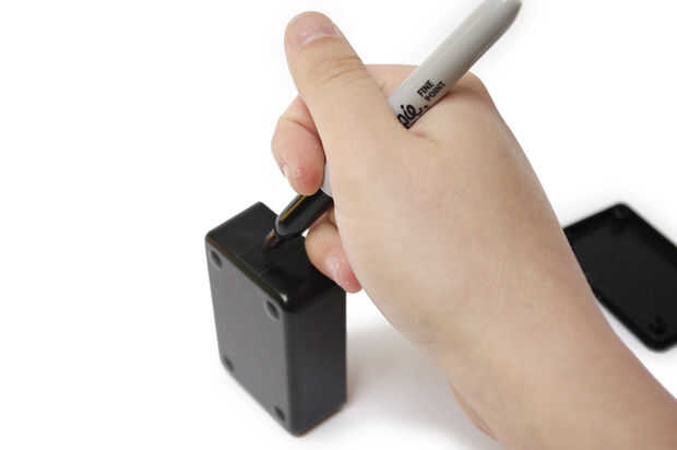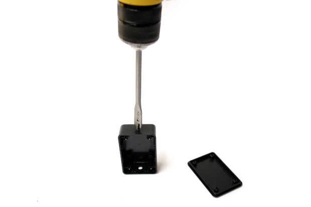 Taladrar un orificio de 1/4" centrado y el lado de 1" x 2" de la caja más pequeña del proyecto.