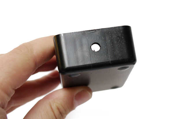 Drilll un agujero de 1/2" centrado en el otro 1" x 2" lado.