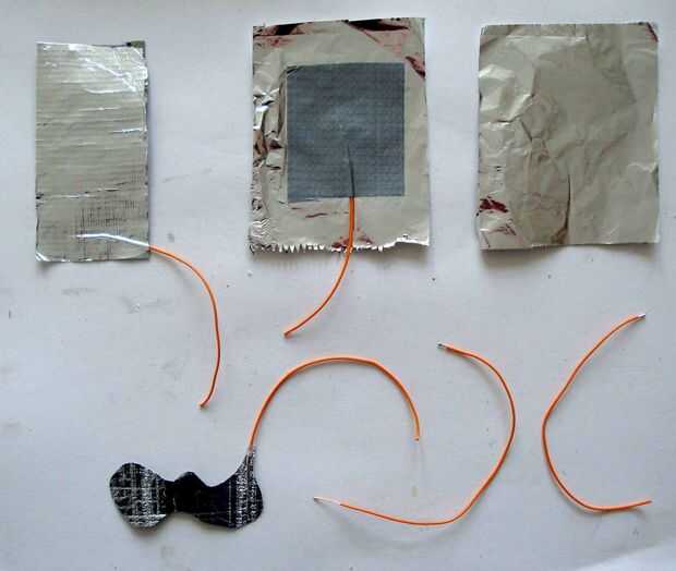 Poner la pieza de cobre en el papel de aluminio y aplique la cinta de pato.