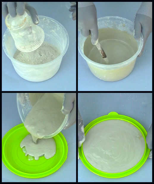 Mezcle suficiente cemento rápido para llenar el molde. Siga las instrucciones en la caja