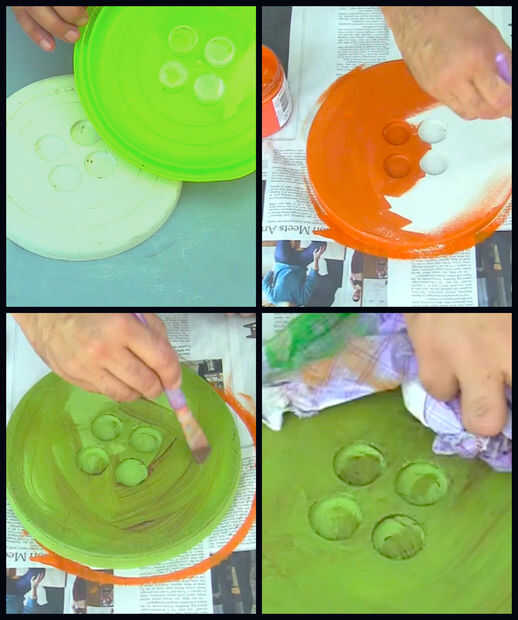 la forma más fácil de hacer coloridas piedras fue enseñada me por hormigón artista, Terri Ryan, que hace muchos, muchos interiores y ornamentos exteriores de concreto.  Sin un molde, ella simplemente agrega una capa delgada de concreto a la parte sup