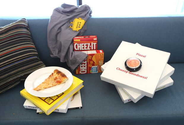 Segundo Colegio hombres, neoyorquinos, técnicos de la tarde en la noche y realmente perezoso: ¡ Bienvenido a tu fantasía. La introducción de la última actualización en Tecnología gastronómica, el botón de la Pizza. No hay necesidad de coger el teléfono a la pizza de la orden ya. Simplemente presione este botón y espere mientras ordena entrega pizza a su dirección.