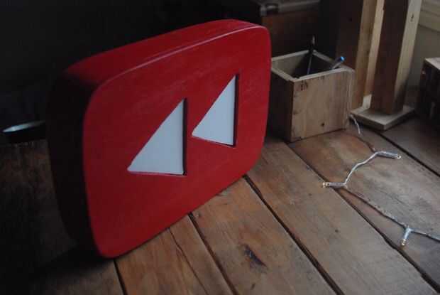 He intentado recrear este botón lo mejor de mi capacidad en este proyecto - por supuesto, en realidad, es muy difícil conseguir el mismo efecto como los de los videos oficiales probablemente están hechos de plástico y se fabrican exclusivamente para YouTube. , Pero una réplica convincente puede ser utilizando madera contrachapada, corflute y pintura acrílica para menos de $20.