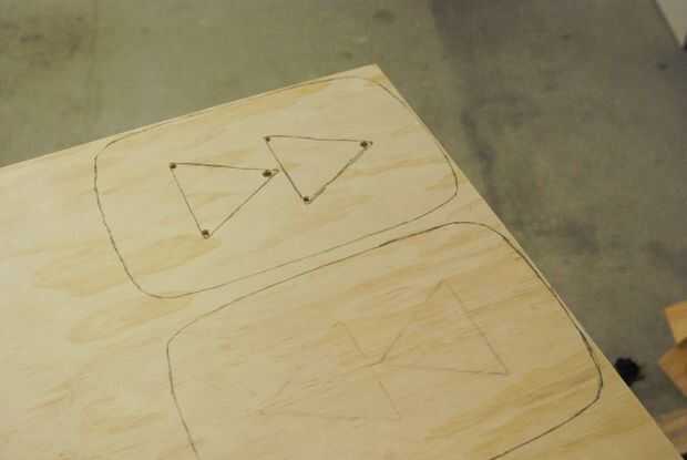 Para empezar, conseguir la plantilla de corte del paso anterior y trazar a la madera. Esto se convertirá en el frente del botón.