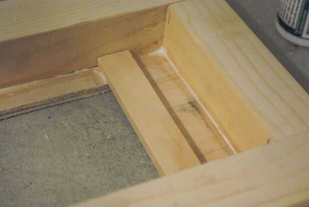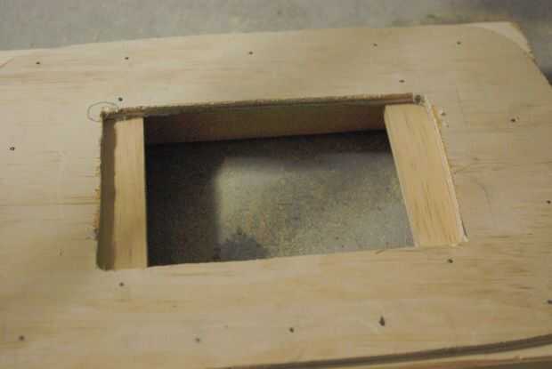 Entonces solo el pegamento en la pieza de nuevo y en uñas. Espere a que seque y luego darle la vuelta alrededor. ¿Ahora recuerdo ese orificio por la parte trasera para el acceso dentro del botón? Ahora tiene que algunos finos listones de madera y cortarán a la longitud correcta para encajar en el interior. Asegúrese de colocarlas para que la cubierta de los bordes de donde se encuentra el orificio (véase los cuadros). Estas tiras celebrará la placa de respaldo extraíble en para que no caiga o no el botón.