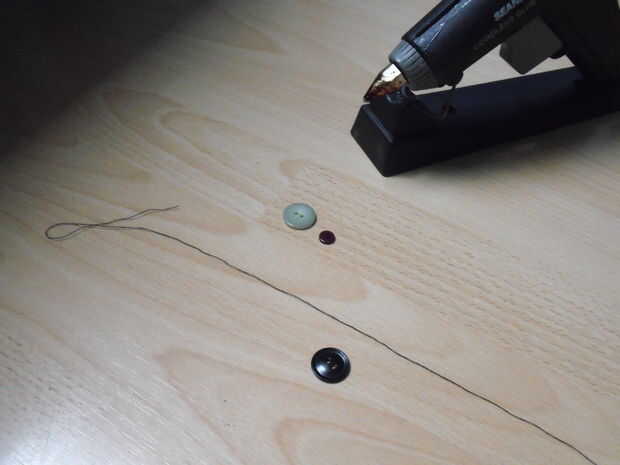 Necesita de este Instructable: -cadena (siempre cortado más entonces usted piensa que necesita, siempre se puede recortar por) -2 botones grandes -un botón muy pequeño -una pistola de pegamento -un anillo (no en la imagen)