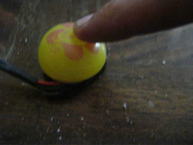Es muy sencillo, una vez que su placa es el tamaño correcto y has soldado el botón para con la resistencia en el lugar correcto, uno de esos juguetes amapolas sobre pegamento estupendo. Terminarás con este...