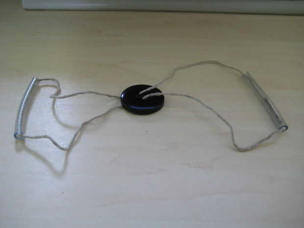 para hacer este simple juguete necesita botón (más grande que puede encontrar con dos o cuatro agujeros) y sting (suave pero más rígida que necesita para el agujero de unos 60cm más o menos) eso es todo. Tire la cadena thaugh los orificios si theres cuatro hacerlo como con dos.