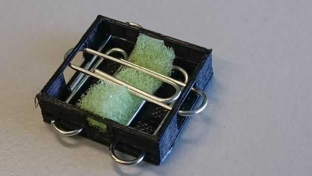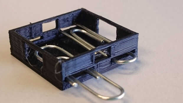 1. Empuje 2 clips de papel en las 2 ranuras vacías del recinto cuadrado. Probablemente necesite som alicates para hacerlo.