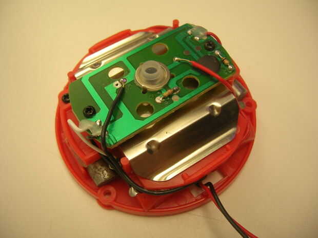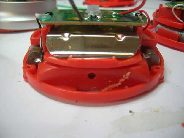 El primer paso es abrir el botón fácil e intercambiar las conexiones que facilitan el "que era" sonido de dos cables que envían el interruptor a la interfaz de teclado.