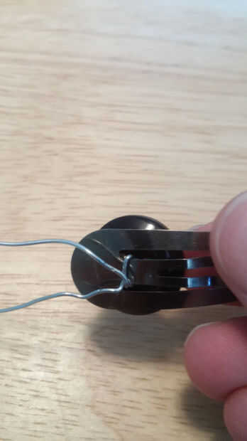 3. luego trenzado el cable alrededor de la parte posterior de la horquilla para asegurar los botones.