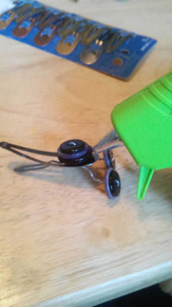 2. Ponga un poco de pegamento caliente en el extremo posterior de la horquilla para asegurar los botones para el pasador.