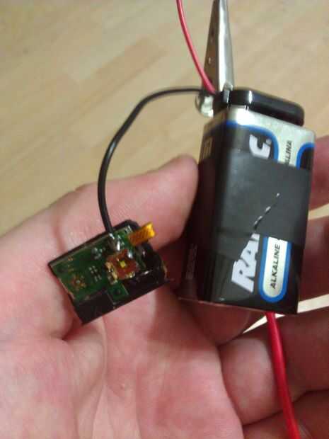 1 led con la viruta de un flash del celular. Usted puede utilizar cualquier LED, pero usted tendrá que utilizar la resistencia correcta para tu led por eso usé el flash del celular ya tenía la resistencia que necesitaba en el lugar.