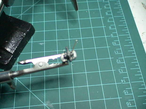 -Con un pequeño taladro taladro de broca (1/16") 2 más agujeros como en la imagen de abajo.