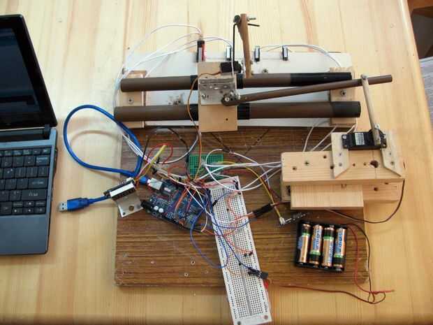 Este es un reloj bastante loco: Arduino Lee un módulo de reloj de tiempo real y luego un "dedo" del servo controlado golpes en cada número en una pantalla de 4 dígitos de Grove. Tienes que ver el video para entender.,