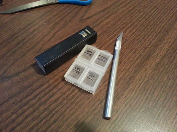 -Caja de la píldora plástico. Compré uno que esté más cerca en tamaño de mi cargador.