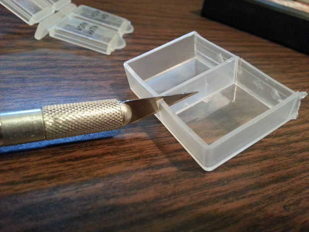 1. cortar la caja de la píldora así que sólo tienes una celda con los 4 lados. Evitar separar la tapa de su celular.