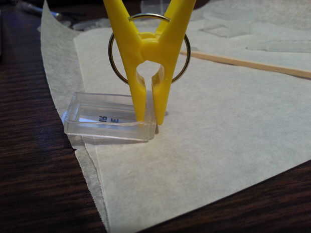 Retire la tapa, poner epoxi en la parte posterior de la célula y colocar la tapa en. Utilizar una pinza para sujetar la pieza trasera de plástico en la celda. Grabar solo la tapa en no crea suficiente tensión para mantener la tapa cerrada por eso pegué en.