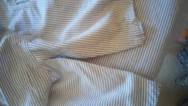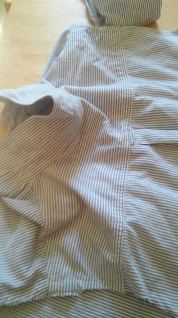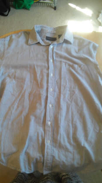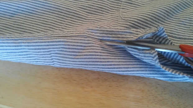2. corta la costura lateral - luego cortar todo el camino hasta el lado de la derecha de la camisa por la costura. -Botón camisas tienen doble costura agradable y si se corta cerca de la costura sin cortar la costura no tiene que hacer cualquier cosa para ocultar el borde de la tela