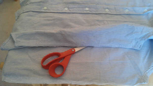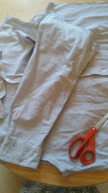 1. en primer lugar cortar los brazos - comenzó cortando las mangas bien por la costura. (una manga ya se había ido debido a mi anterior instructable)