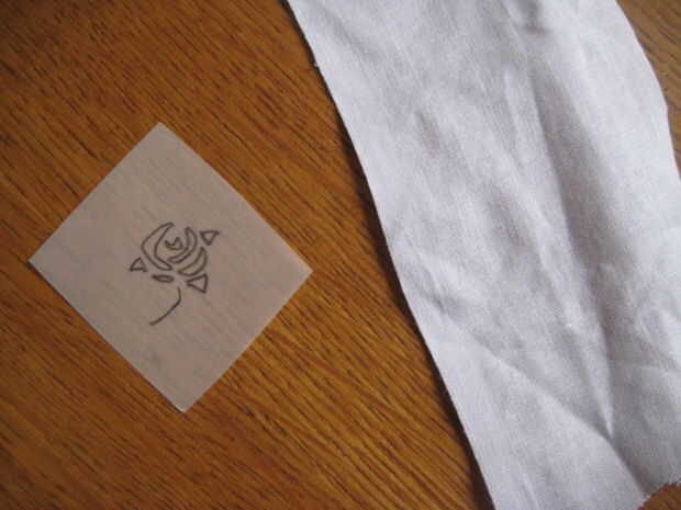 Para bordar, dibujar tu diseño en papel, voltee cara sobre la tela y frote lápiz sobre transferir el diseño a la tela. Borda y el botón de la cubierta.
