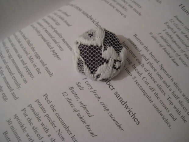 Pruebe a cortar una forma de mini y apliques en tela antes el botón de la cubierta.