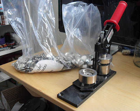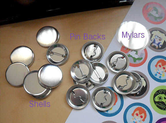 Piezas de botón de Tecre - estos incluyen cáscaras, partes posterioras Pin y Mylars. El proveedor que comprar a típicamente los paquetes todos juntos y se puede comprar en diferentes cantidades. Una vez más, se olvide de comprar el tamaño adecuado para su máquina.