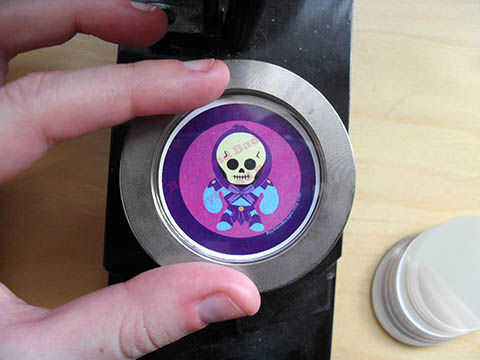 3) Coloque un disco de mylar en la parte superior el gráfico. Mylars tienden a pegarse, pues flex el disco y mirar la luz para asegurarse de que no haya más de uno. Una manera fácil de punto doblado mylars es que tienen una mirada reflexiva del arco iris, como la superficie de una pompa de jabón. Utilice un paño de algodón para limpiar suavemente cualquier realmente evidentes huellas dactilares antes de colocar en el Die de recolección.