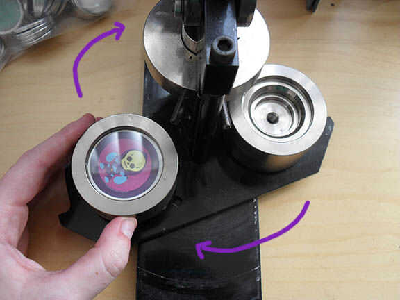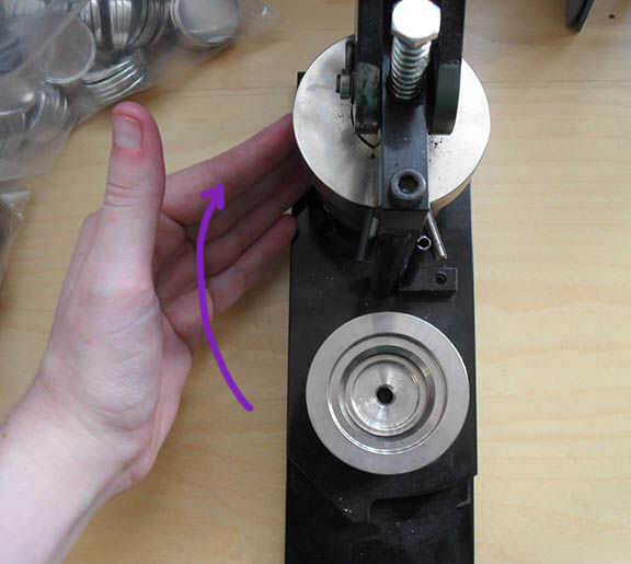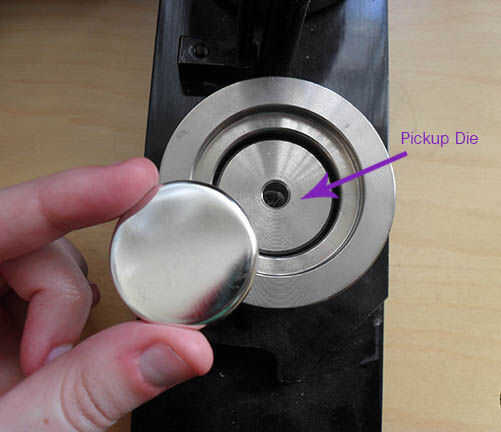 5) agarrar la manija y tire hasta prensa. Su pila de mylar/gráfico/shell se ha desaparecido--no preocuparse ya que es NORMAL. Se encuentra en el superior Die, esperando a ser presionado en el pasador en el siguiente paso.