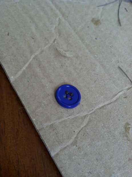 Coloque el lado adhesivo hacia abajo en el cartón. Rápidamente Quite el botón fuera de la cartulina. Asegúrese de que la capa de cola no es demasiado fina, pero no espesor. Si es demasiado grueso, será muy difícil de coser. Demasiado fino y se quiebra. Nota: hacer esto muy rápidamente! Si establece el pegamento, luego tendrás un botón de copia de cartón!