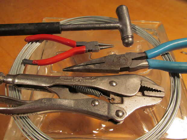 con una pequeña sección del cable puede hacer todas las clases de botones. El cable que estoy usando es alambre de galvanizado de calibre 16. Usted puede recogerlo en la tienda de hardware. Puesto que este tipo de alambre se oxida en el lavado el botón tendría que ser extraíble. Haces haciendo un pequeño ojal donde normalmente sería coser el botón en. Un clip extraíble tiene el botón en su lugar. Pero siempre se puede utilizar alambre que no aherrumbrará.
