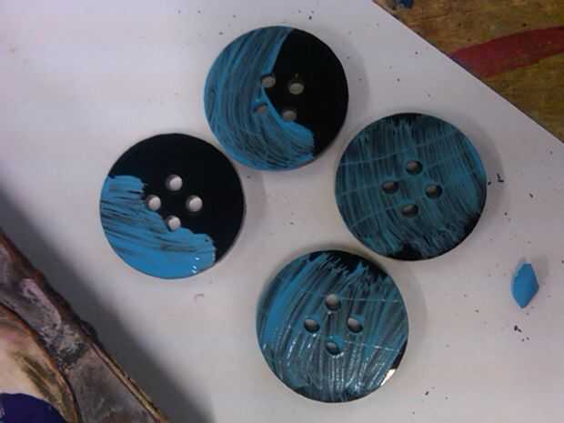 Usted necesita asegurarse de que el polvo de corte ha sido aniquilado primero. Utilice un paño suave o tejido para limpiar los botones de abajo, luego ponga sobre papel para pintar. Cubrir las partes grabadas en una capa bastante gruesa de pintura - no quieres gotea, pero tiene que trabajar en todos los boquetes pequeños. Si es posible, evite meterse demasiada pintura en los agujeros de costura, si se puede se ahorrará trabajo más adelante!