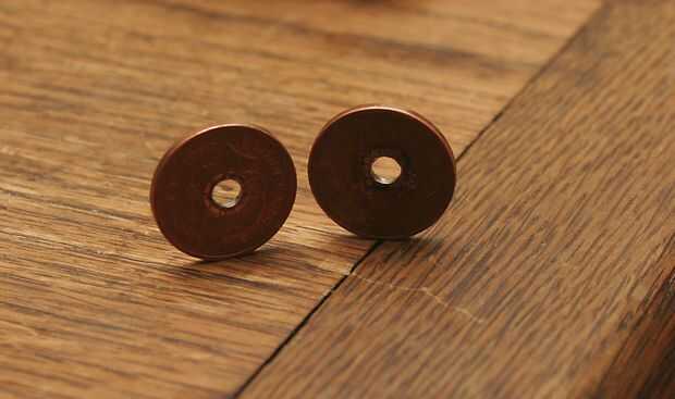 Para hacer los agujeros en las monedas sobre que no hice demasiada hoking, agarré una broca de 4mm - un Bosch barato uno.